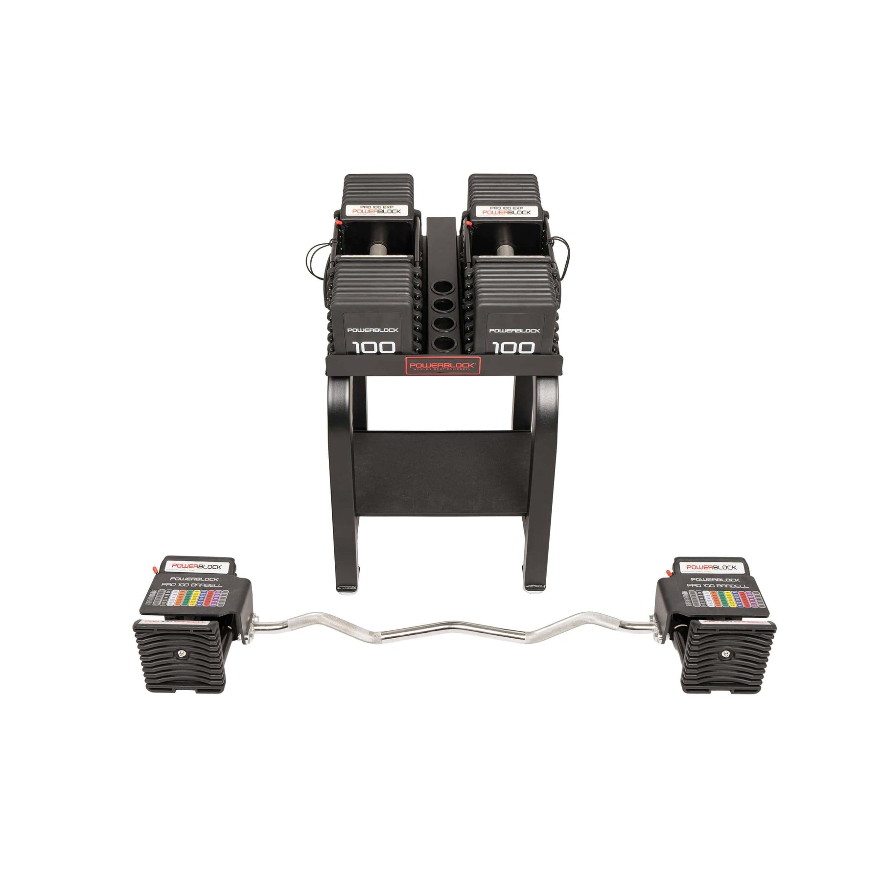 Das Pro 100 Complete Bundle bietet vielseitiges Krafttraining mit Pro 100 EXP verstellbaren Kurzhanteln, einer Pro 100 EZ Curl oder geraden Stange und einem Home Rack Stand. Perfekt für Heimtrainer: Diese Hanteln ersetzen herkömmliche Geräte und bieten professionelle Leistung in einem platzsparenden Design.